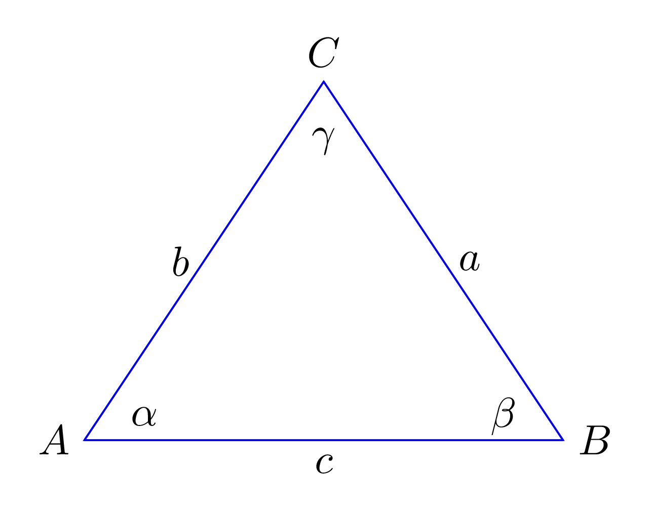 \[ \frac{a}{\sin \alpha} = \frac{b}{\sin \beta} = \frac{c}{\sin \gamma} \tag{1.4}\]